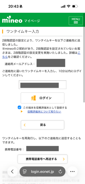 mineoへログインができました。