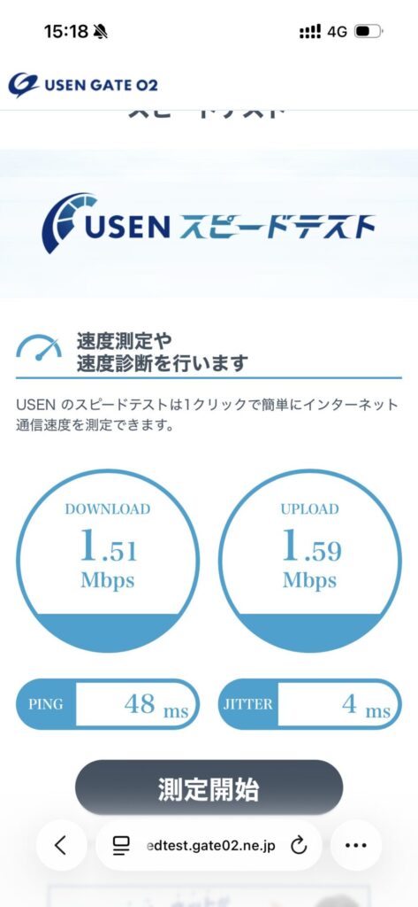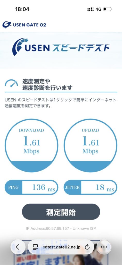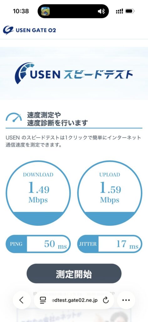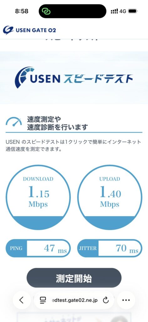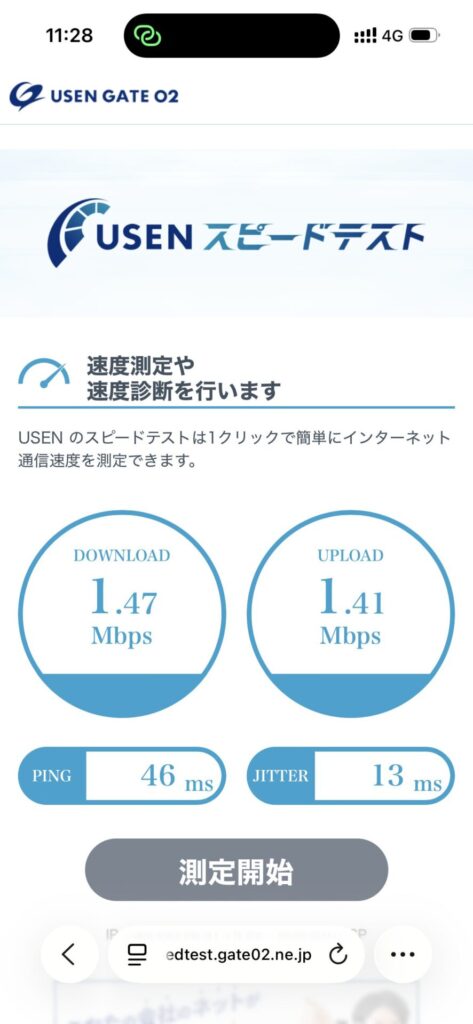 この時の速度は下り1.47Mbps/上り1.41Mbpsです。