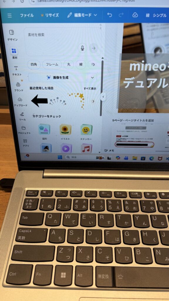 ただ、Canvaが開かれてからは、サクサク画像編集を進めることは可能でした。また、編集した画像のアップロードも遅さを感じませんでした。