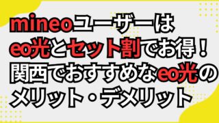 マイネオ eo光はmineoとのセット割で毎月330円割引!eoのメリット・デメリットまとめ 関西エリアで人気の光回線「eo光」は、格安SIMの「mineo」とのセット割で毎月330円割引が受けられるお得な回線です。本記事では、eo光の基本情報からメリット・デメリットを解説し、契約前に知っておきたいポイントをまとめました。高速で安定... 2025.10.14 マイネオ光セット割
