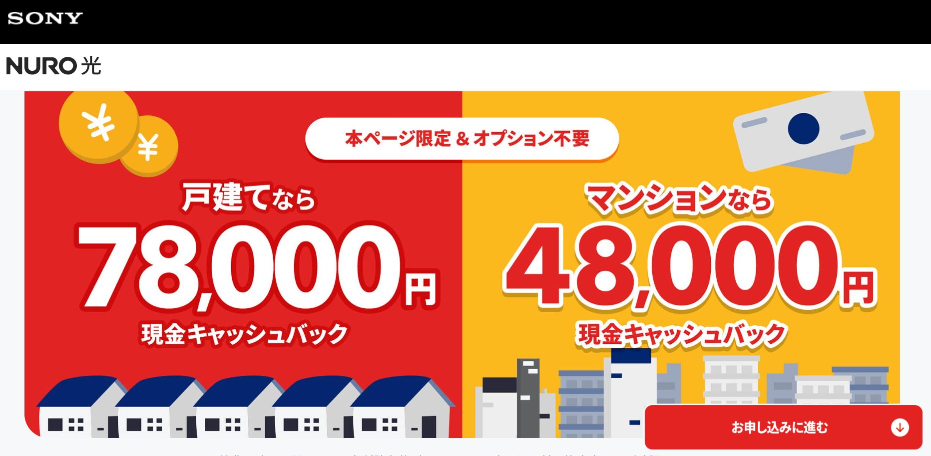 なお本ページにあるNURO光の案内はすべてキャッシュバック対象ページへアクセスするので、キャッシュバックを受けとり乗り換える方は、本サイトからNURO光の公式サイトへアクセスしてください。